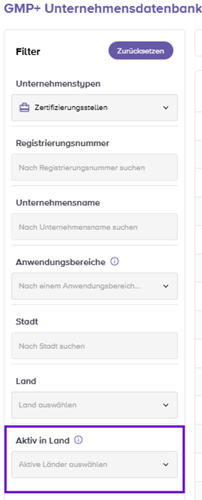 Es steht Ihnen frei, eine neue Zertifizierungsstelle selbst auszuwählen. Der erste Schritt besteht darin, nach einer anerkannten Zertifizierungsstelle zu suchen, die Sie in der GMP+ Company database finden können.