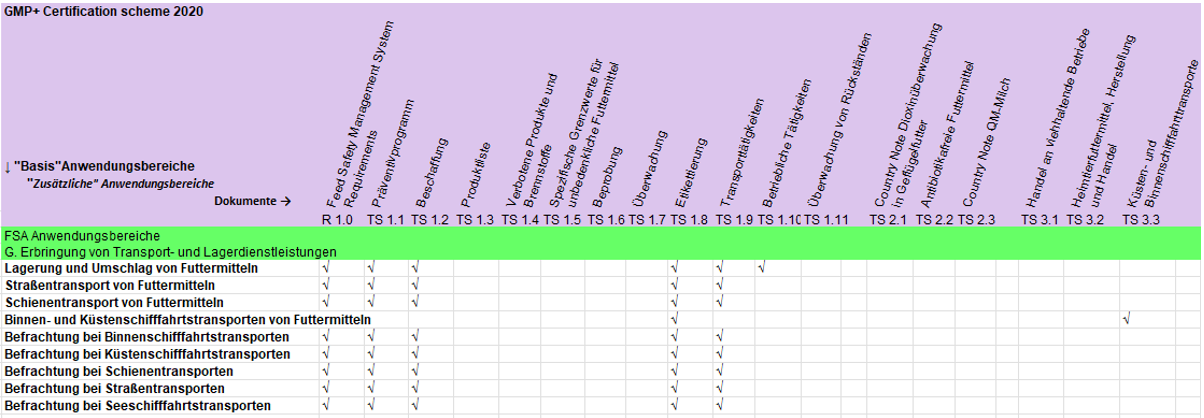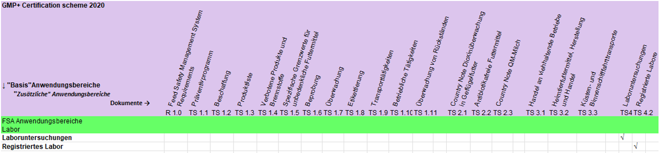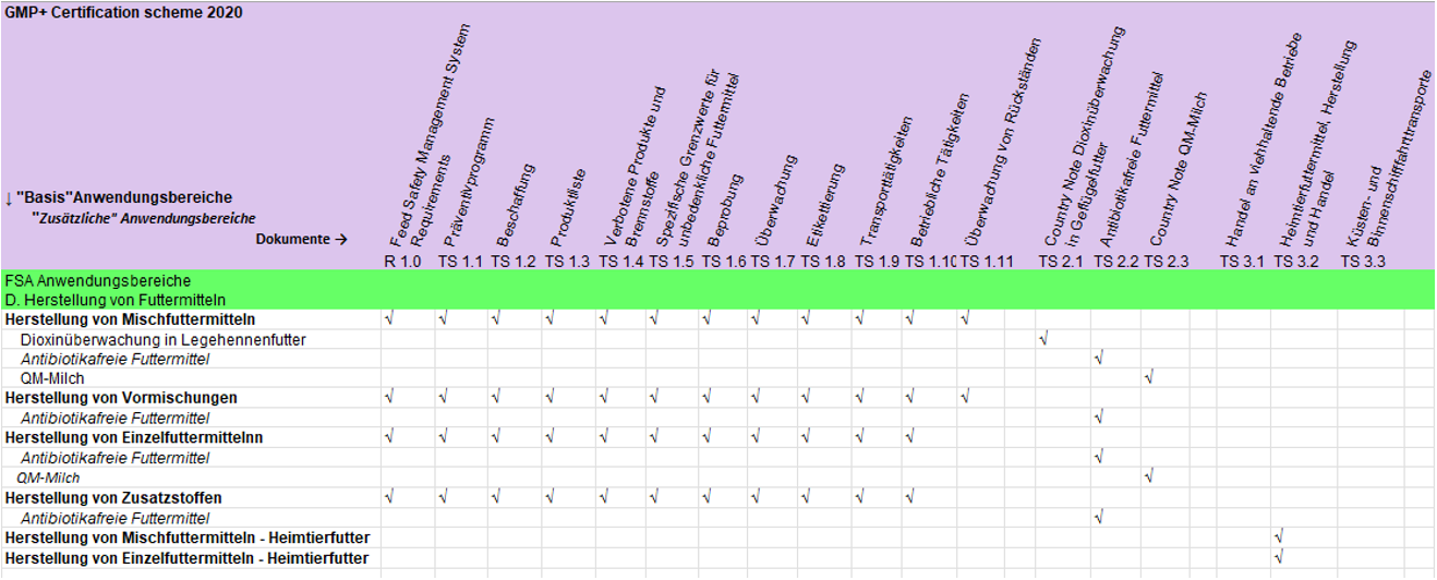 | GMP+ Standard | Siehe Tabelle 5 in Abschnitt 2 | |