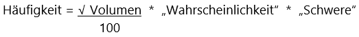 | Wahrscheinlichkeit | Der Standardwert der Wahrscheinlichkeit ist 1. Der Teilnehmer darf diesen Wert unter Angabe von Gründen erhöhen oder senken. Dabei können folgende Erwägungen zutreffen: