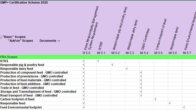 - Although special attention was paid when drawing up these tables, it might be possible that because of your specific activities, you also have to comply with other (parts of) scheme documents than indicated in the tables, or with specific national legislation. It remains the responsibility of the feed company to select all relevant scheme documents and to comply with all relevant requirements.