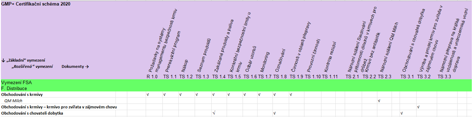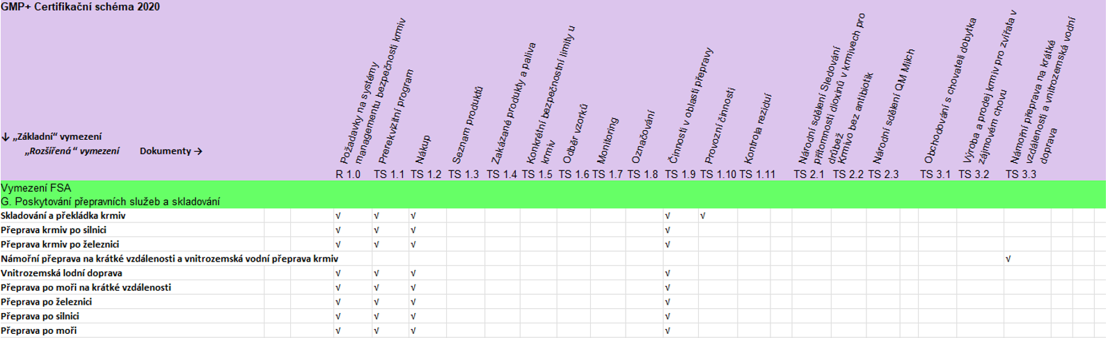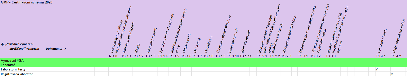 | Standard GMP+ | Iz Tabulka 5 v kapitole 2 | |