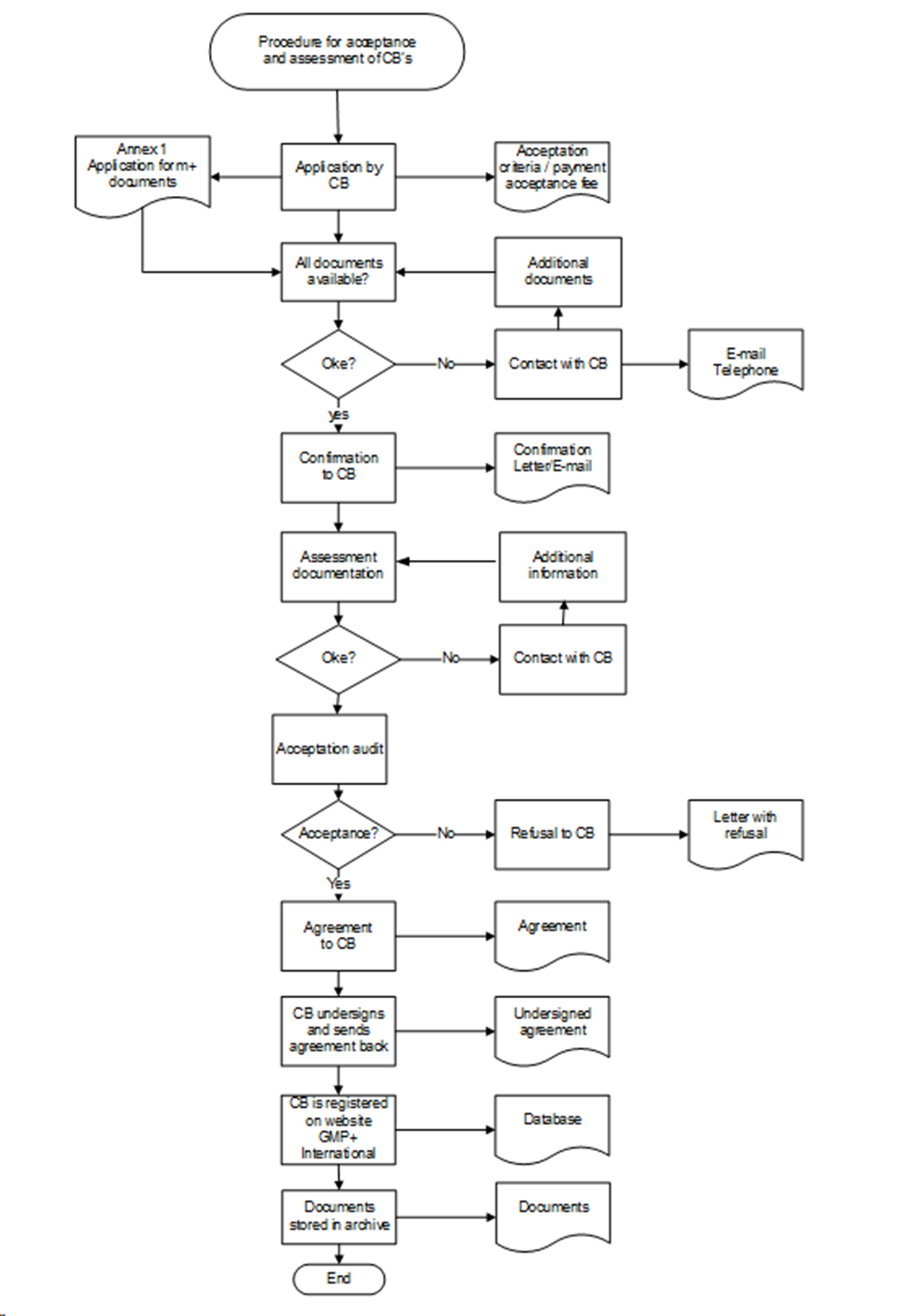 GMP+ International will confirm this application in writing. If the applicant Certification Body cannot be accepted by GMP+ International within the timeframe of 26 weeks after the first application, GMP+ International will terminate the acceptation procedure. The applicant Certification Body is then not allowed to start a new acceptation procedure within a year after the termination date.